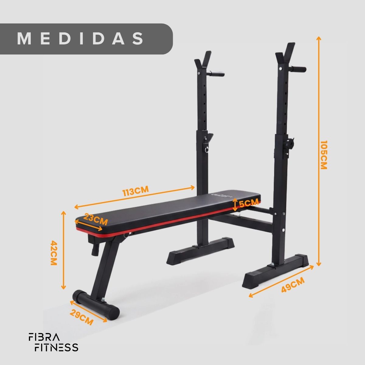 El Banco Plano con Soportes para Barra FIBRA FITNESS es un equipo robusto, estable y funcional, diseñado para entrenamientos de fuerza tanto en casa como en gimnasios.
