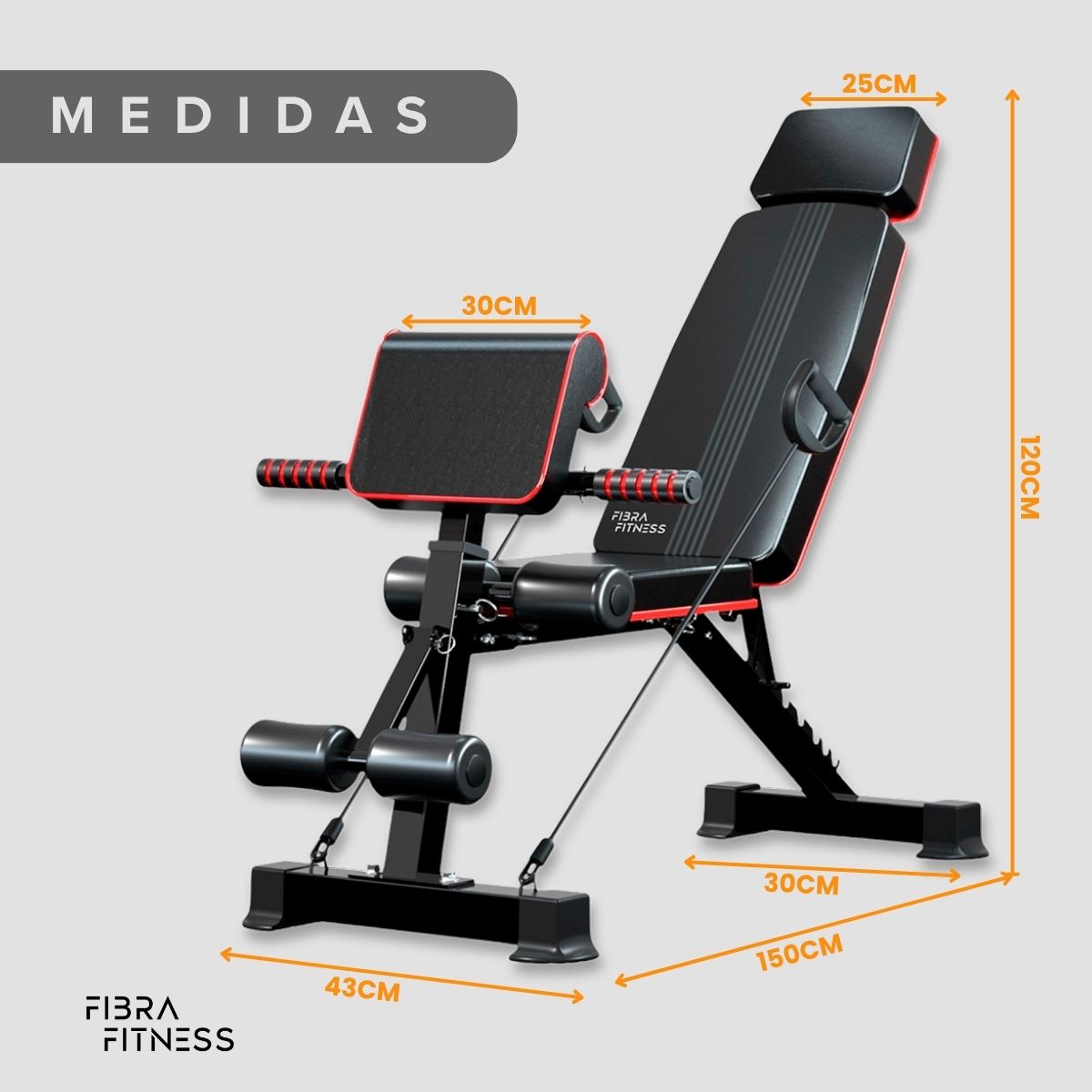 El Banco Multifunción Fibra Fitness permite entrenar diferentes grupos musculares con un solo equipo, optimizando espacio y rendimiento.