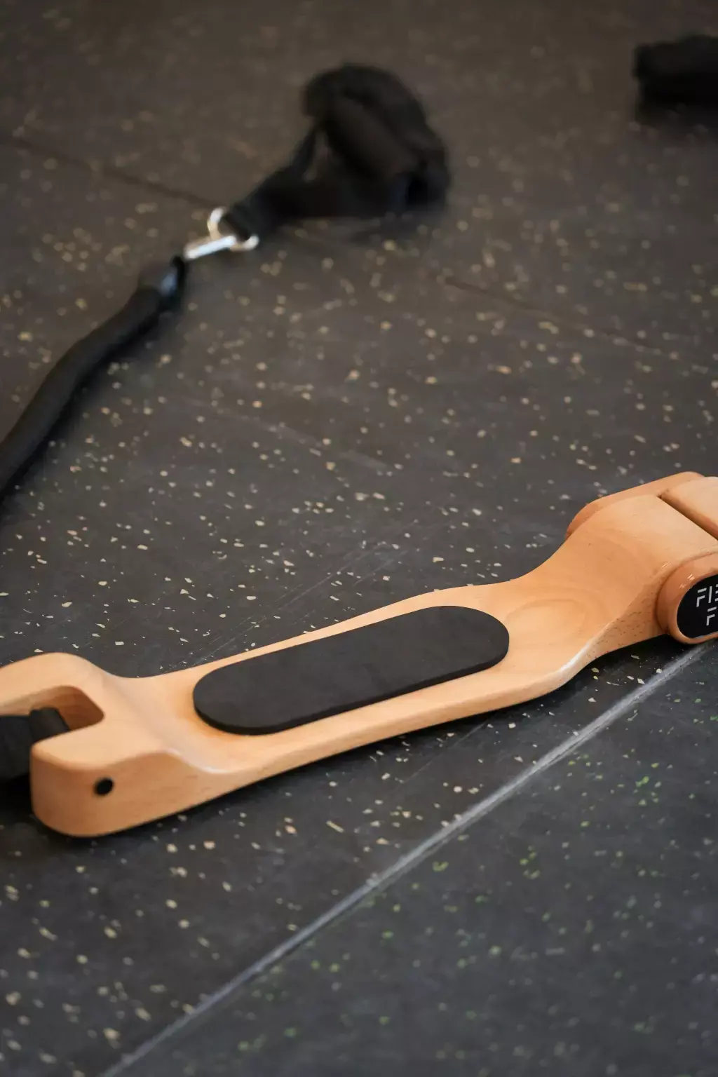 Su estructura de madera con superficie antideslizante, junto con sus bandas de resistencia ajustables, permite realizar ejercicios de tren superior, inferior y core sin necesidad de máquinas grandes ni espacio amplio.