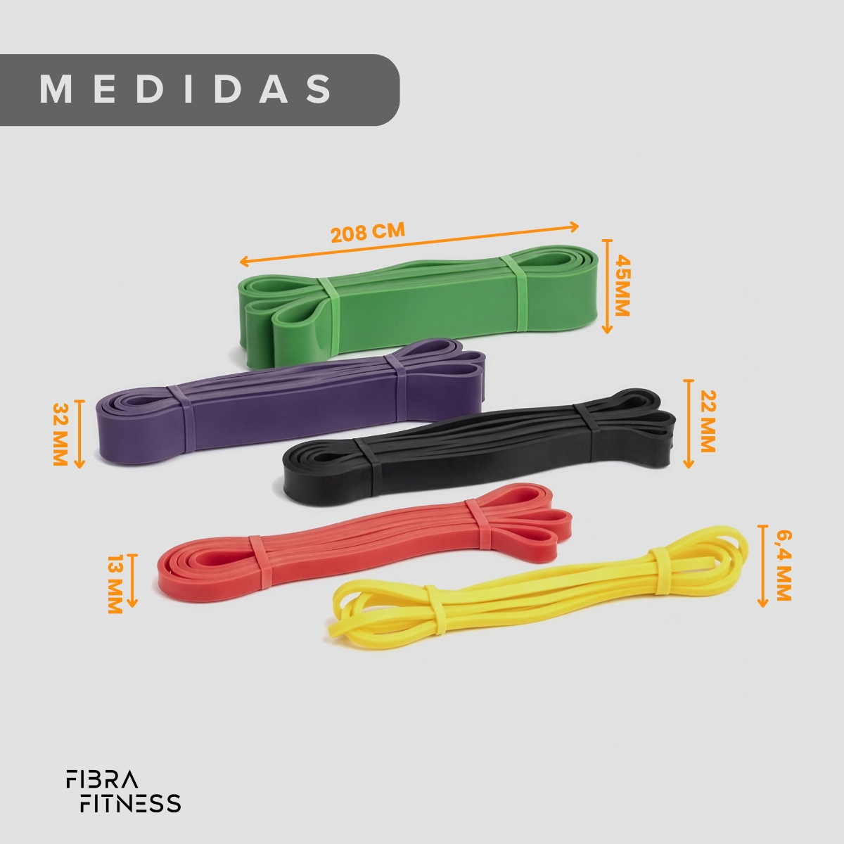 • 5 bandas de resistencia progresiva FIBRA FITNESS